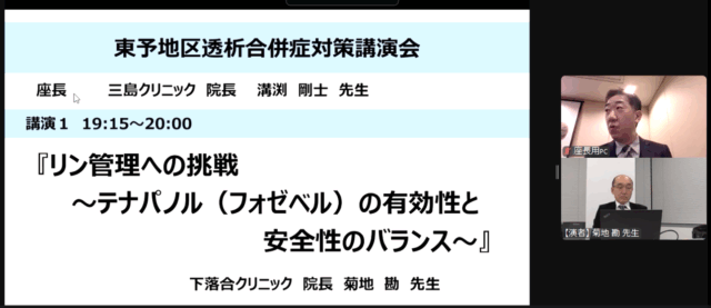 今回は透析医学会で非常にご高名な菊池 勘先生をお迎えし、「リン管理への挑戦」という演題にて、リン管理の最新知見や臨床で役立つ実践的なポイントをご講演いただきました。